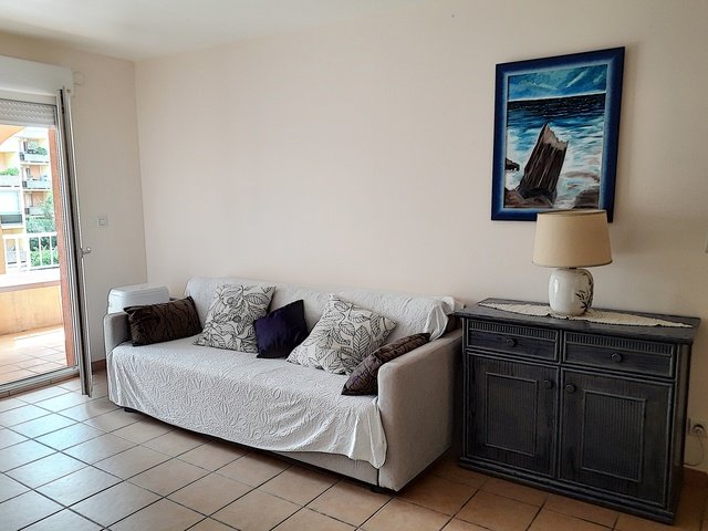 Dans une résidence de standing à 800 m de la plage et de la plage de la Favière, vous apprécierez cet agréable et spacieux T2 cabine de 45m² et sa grande loggia exposée Sud-Ouest. Il est équipé pour recevoir six personnes avec sa chambre, qui donne sur la loggia, son lit deux places de 140*190; Et sa grande cabine, située au niveau de l'entrée, avec ses deux lits superposés (90*90). Vous profiterez de vos convives avec sa cuisine ouverte sur le coin repas et le salon (présence d'un rafraichisseur d'air). Une belle salle d'eau équipée d'une machine à laver et son wc indépendant.
