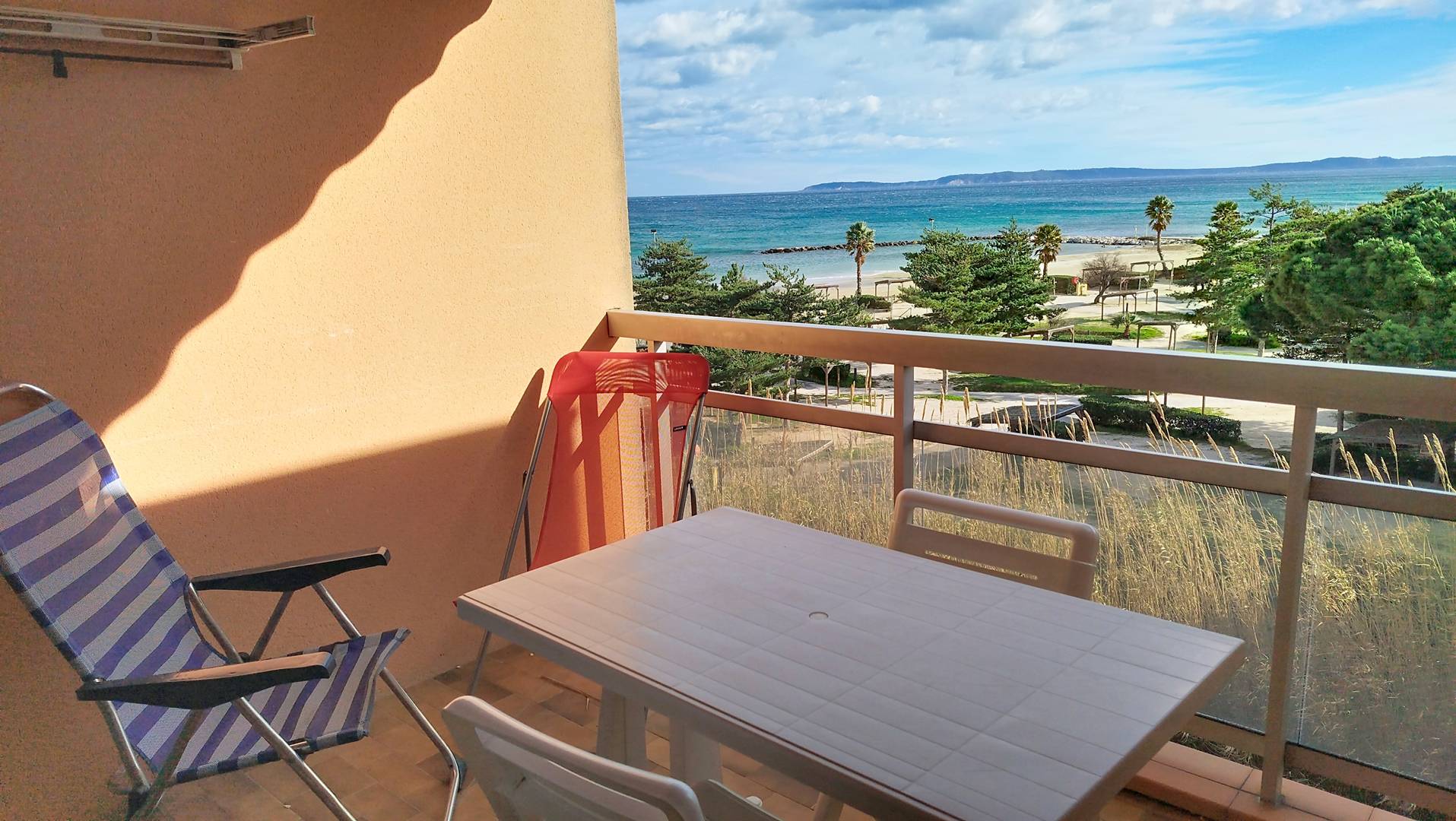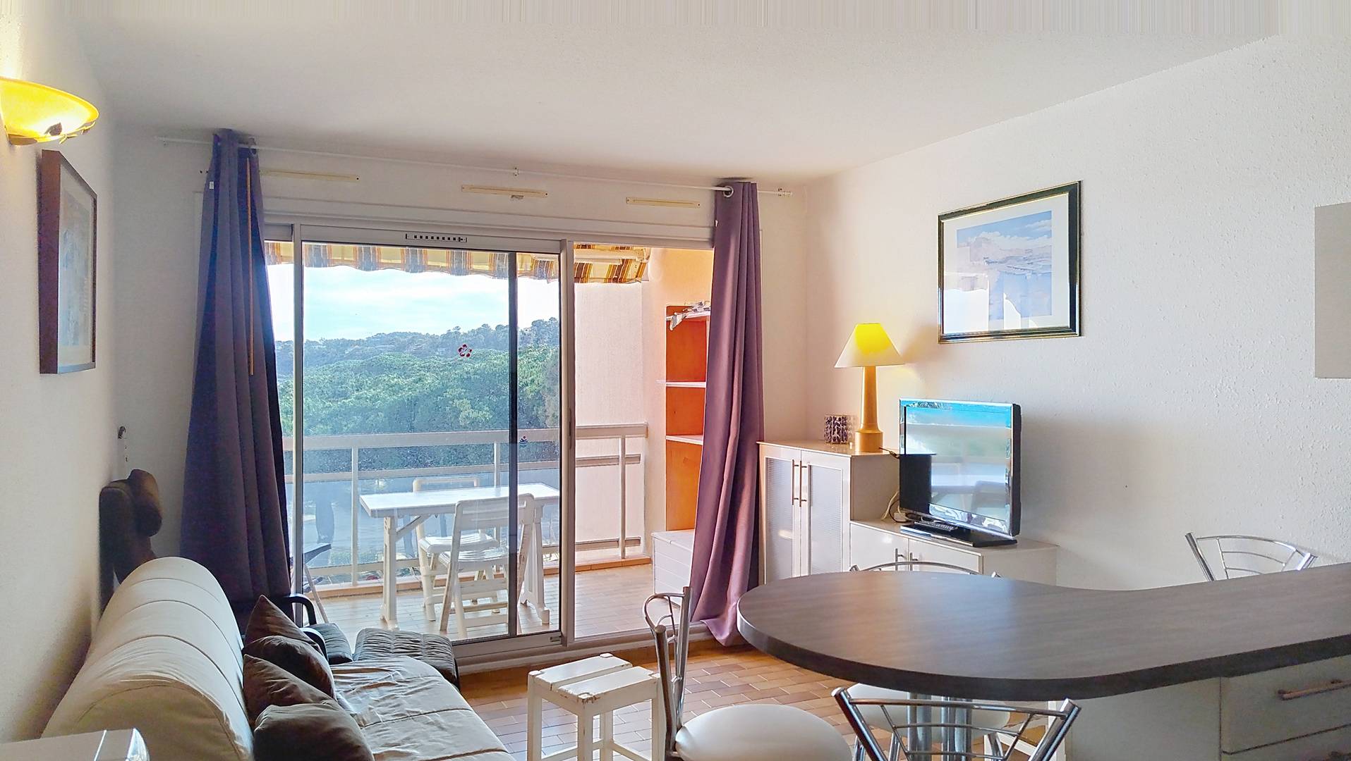 Vous aimerez ce T2, de trente trois mètres carré, situé au troisième étage avec ascenseur, dans la résidence les Rives de la Favière, avec Piscine,Tennis, accès direct à la plage et à proximité de tous commerces. Vous apprécierez sa loggia et son exposition ainsi que sa belle vue sur la mer et la plage de la Favière. Il est équipé pour recevoir quatre personnes avec son convertible deux places et sa chambre avec son lit de 140x200. une salle de bains.WC. Linge de maison non fournis.
