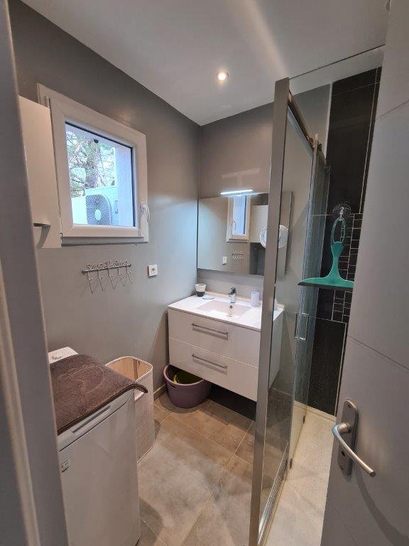 Joli T4 climatisé de 80m² classé 3* avec trois chambres pouvant accueillir 6 personnes, composé en RDC d'un espace cuisine fonctionnel, un grand séjour/salle à manger avec un espace détente (TV), un accès à l'extérieur par une baie vitrée donnant sur une terrasse et un jardin aménagés (table chaises, transats, douche extérieure...) une salle d'eau/wc avec lave linge.