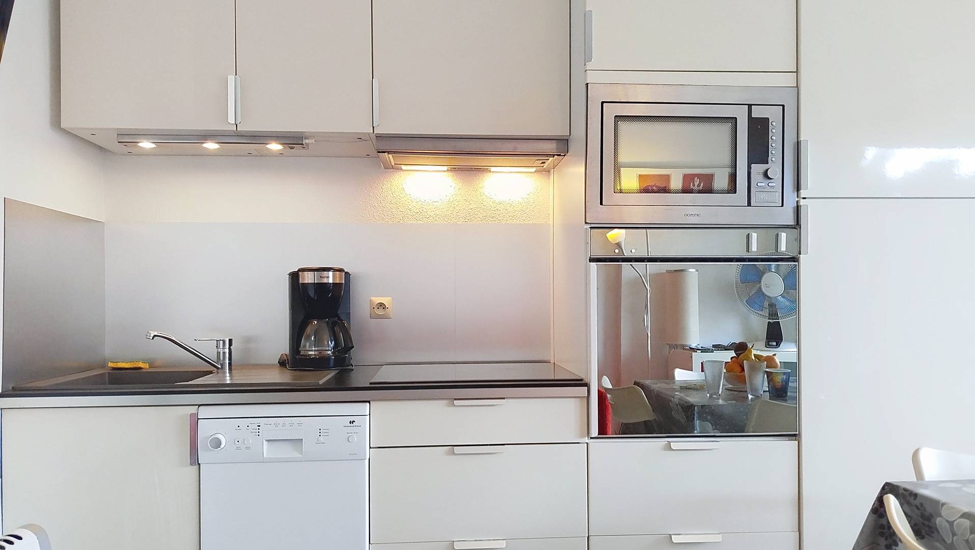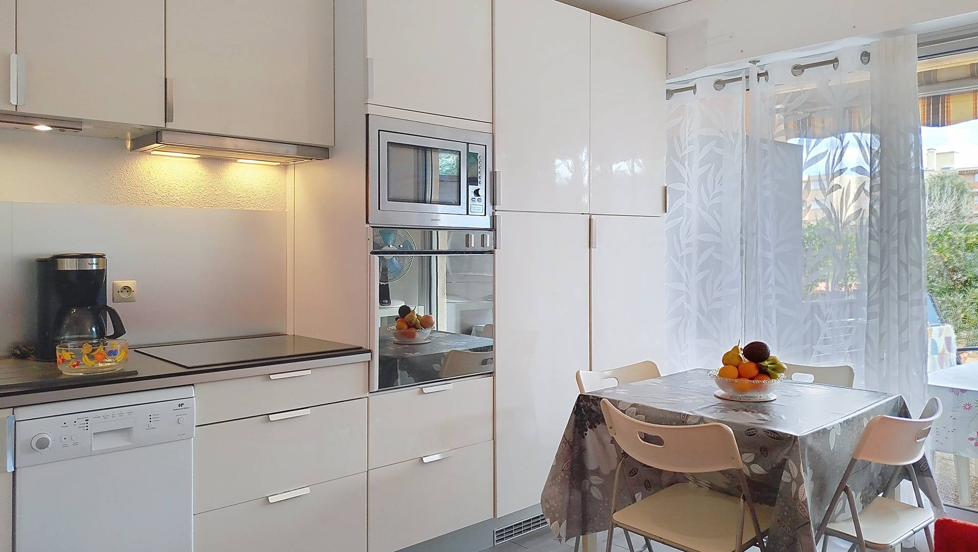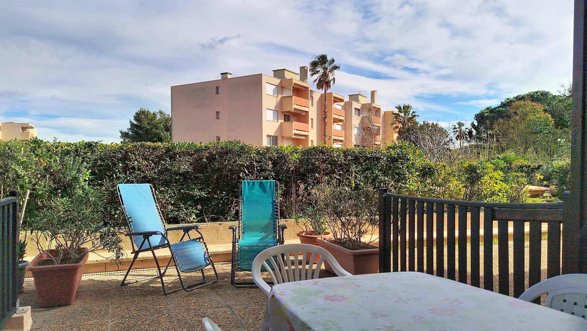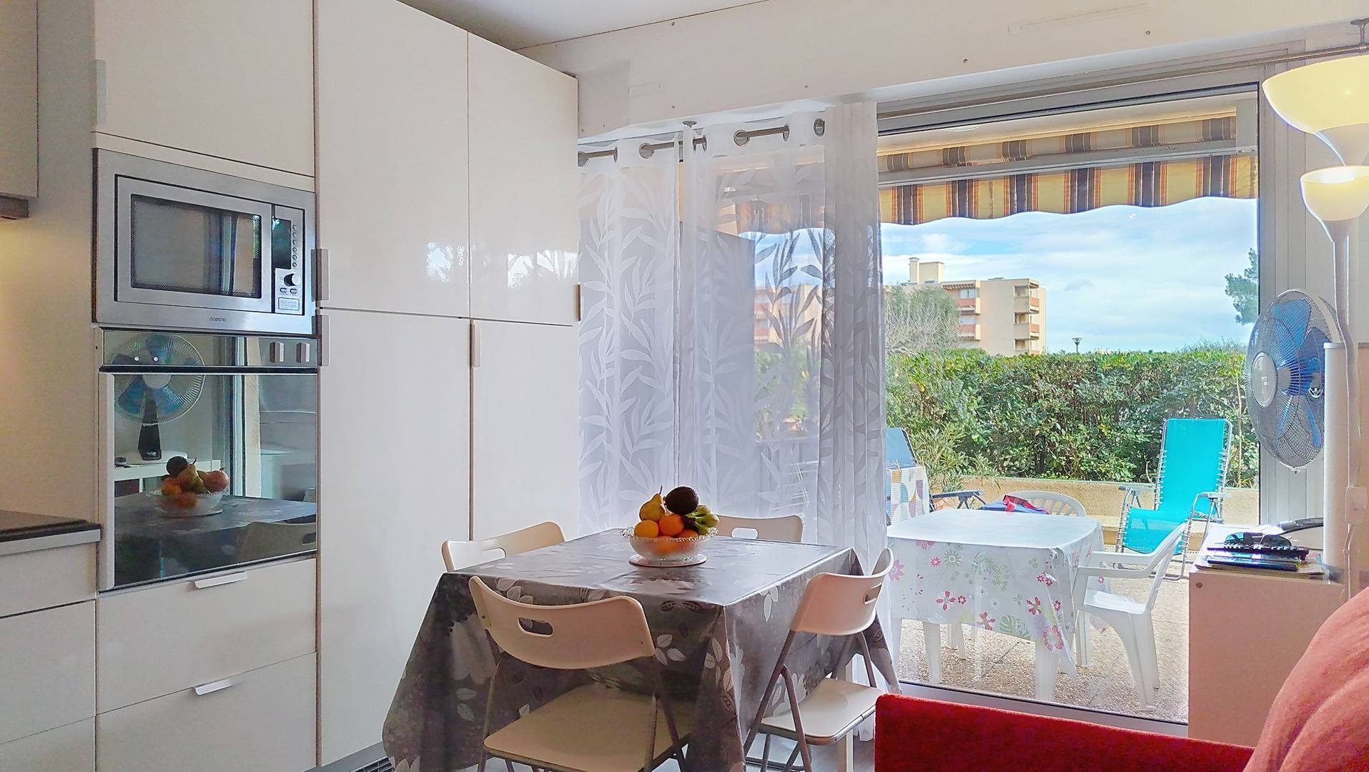 Studio de 18m² pouvant accueillir 4 personnes dont 2 enfants, équipé de 2 lits superposés à l'entrée, un convertible dans la pièce principale; celle ci dispose d'une TV, un espace repas et donne sur une terrasse extérieure de 15m² aménagée et exposée Sud, une salle d'eau/WC avec douche et lave linge, un emplacement parking numéroté 445. Animaux non admis. Linge en supplément à commander au plus tard une semaine avant arrivée. Ménage de fin de séjour inclus (sauf à la nuitée).Piscine ouverte de mi-Juin à Mi Septembre.