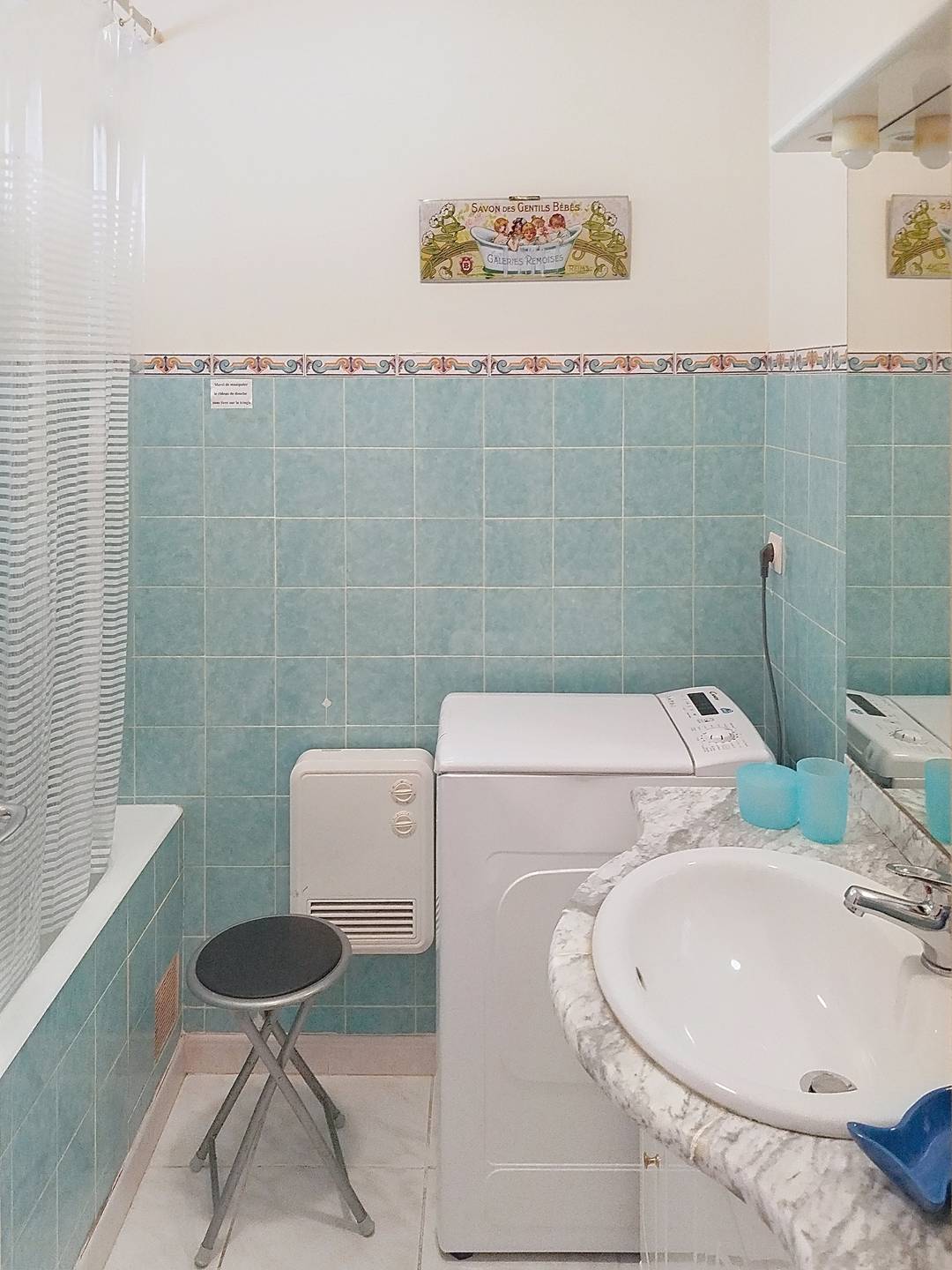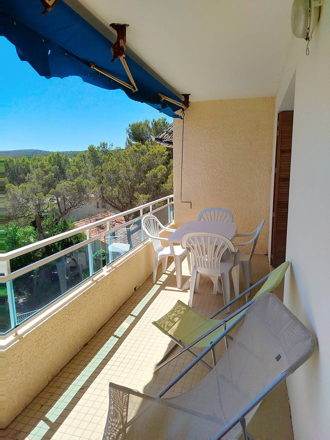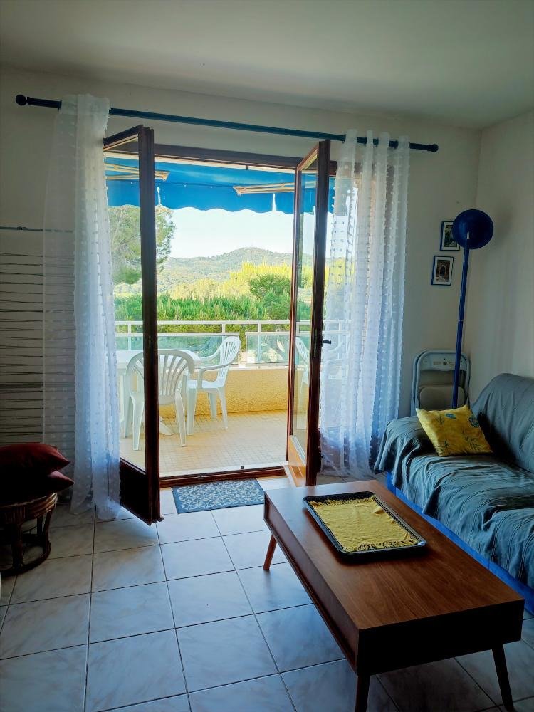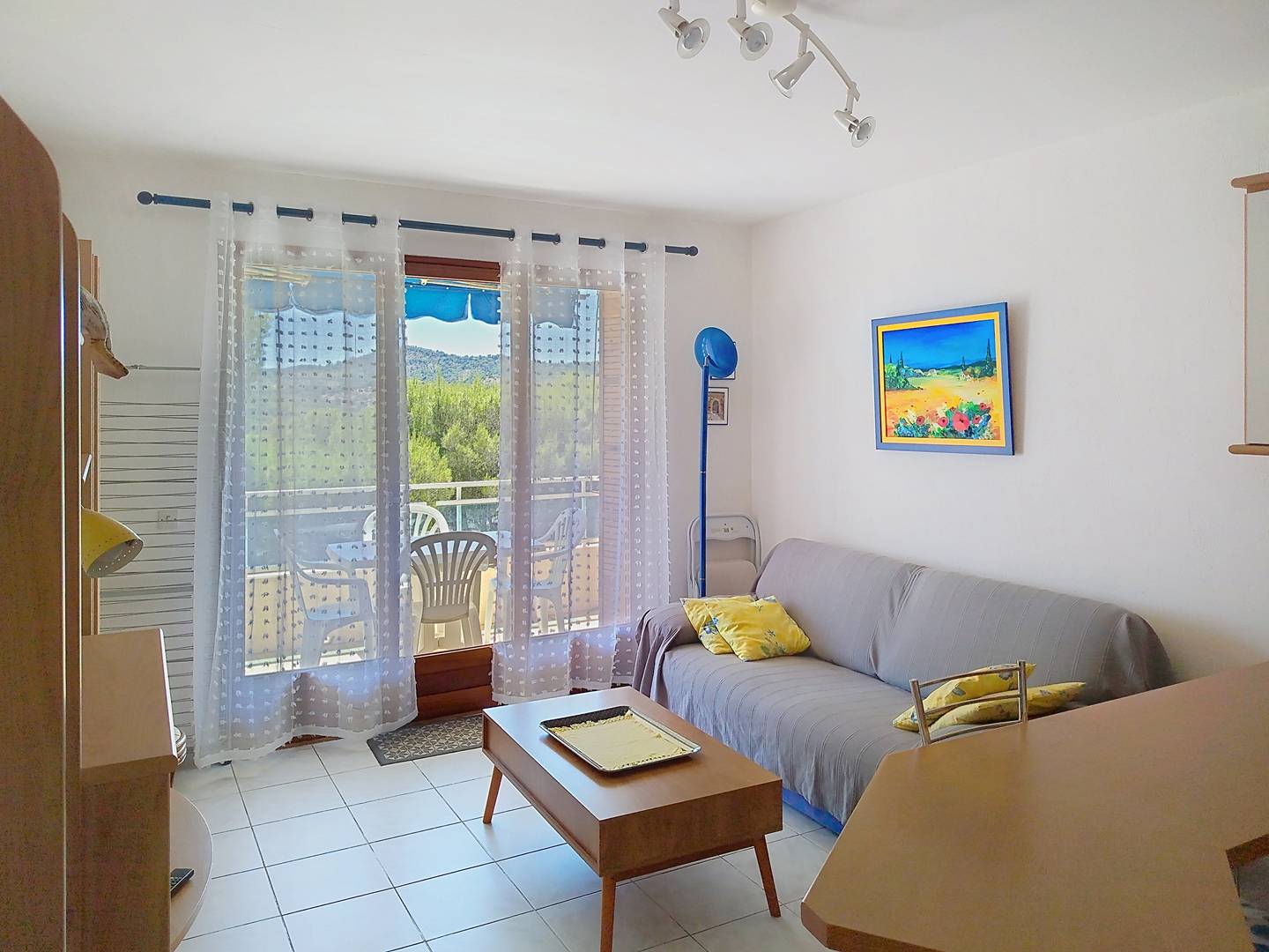 Une salle de bains avec baignoire et lave linge; un wc indépendant, un espace cuisine équipé (plaques gaz et électrique, frigidaire, four, micro ondes) ouvert sur le salon, TV, convertible, une loggia exposée Sud aménagée avec une jolie vue sur les collines et un aperçu Mer. Proximité commerces et plages.Parking libre. Animaux non admis. Linge de lit en sus à commander au moins une semaine avant arrivée).