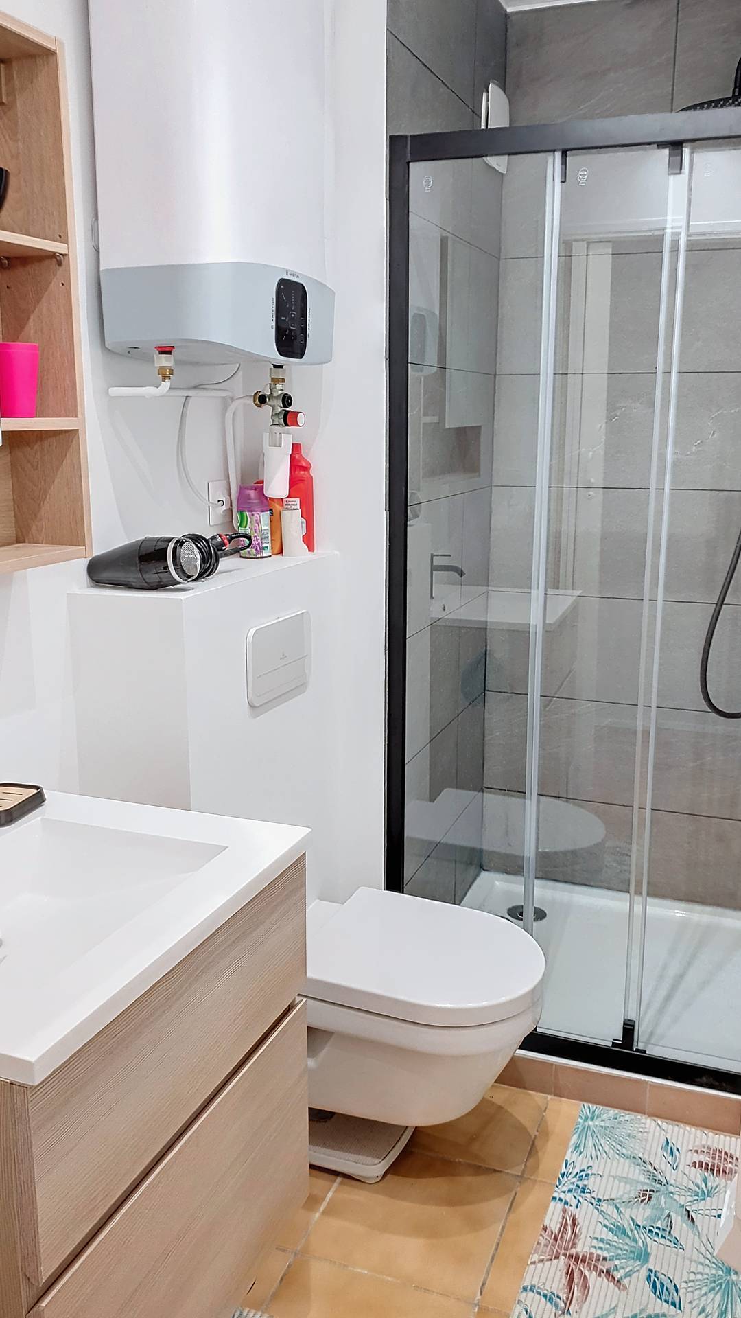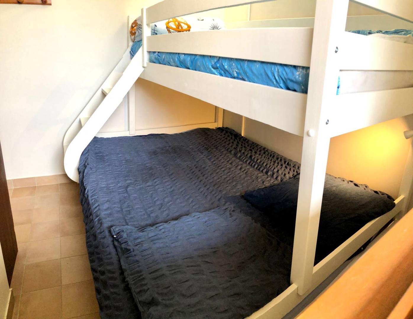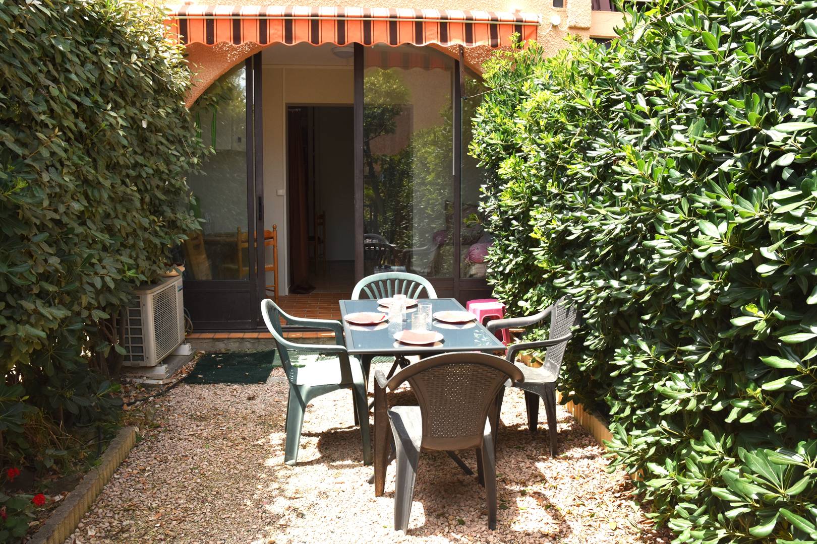 Situé au sein d'une résidence sécurisée et calme, T2 de 30 m²au RDC confortable, entièrement rénové et climatisé, idéal pour une famille, il peut accueillir jusqu'à 5 personnes dans un cadre agréable et fonctionnel. Aménagé d’une chambre avec lit superposé (double en bas et simple en haut), une pièce à vivre avec convertible en 140, table, TV, un coin cuisine (plaque vitrocéram frigo, four micro-ondes combiné, lave-linge…), une salle de bain rénové avec cabine de douche, une loggia fermée lumineuse avec baquette, table basse, table, congélateur), un jardinet privatif et une place de parking. Atout majeur : la plage est à seulement 400 mètres.