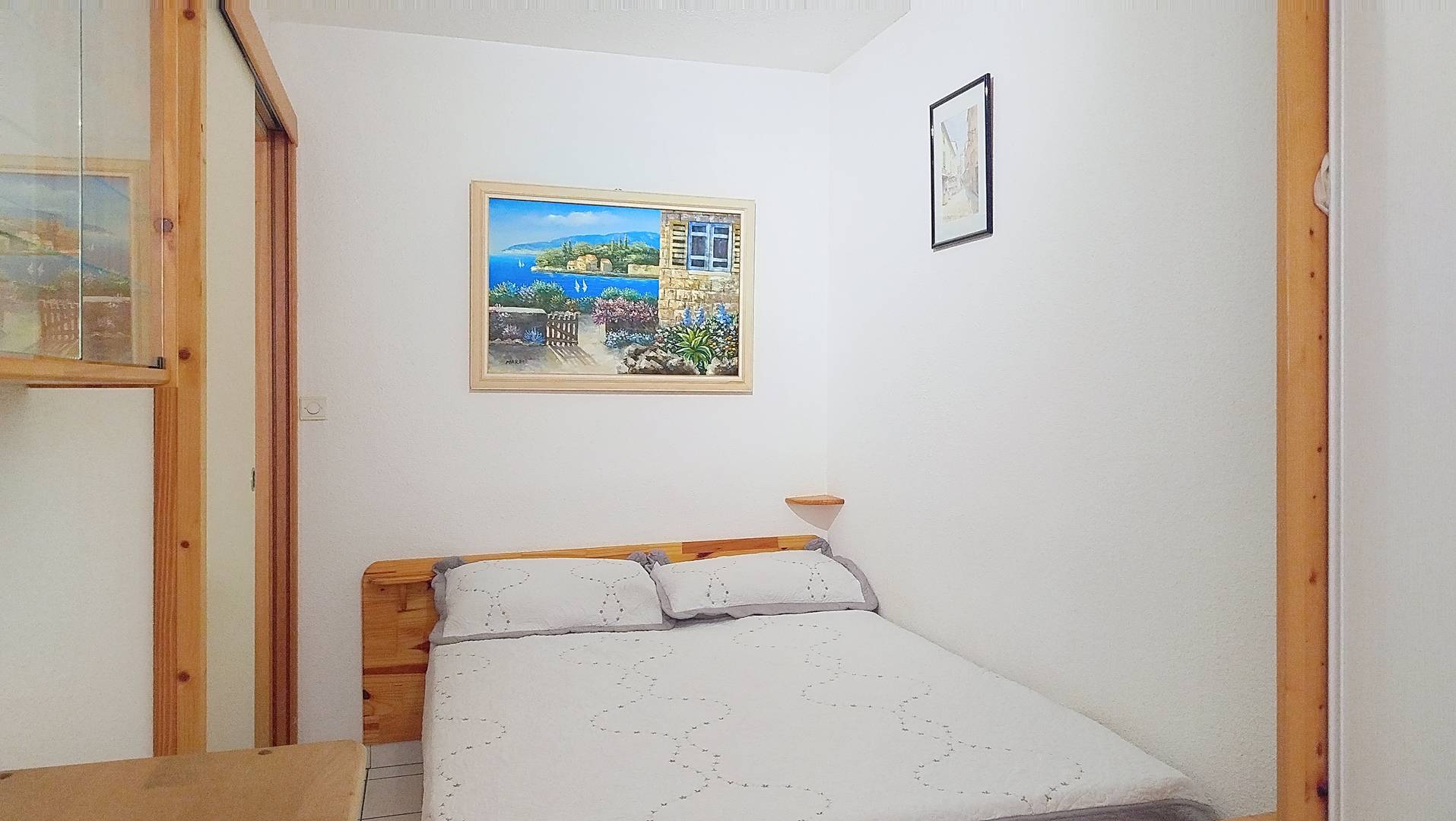 T2 climatisé de 33m² pouvant accueillir 4 personnes, une cabine avec clic clac, une chambre avec lit double, une salle d'eau avec douche et WC, une pièce principale avec cuisine équipée(four, lave linge, lave vaisselle, micro ondes, plaque induction), un espace détente (canapé), une loggia exposée Sud et équipée. Un box en sous sol n°237. Animaux non admis. Linge en supplément à commander au plus tard une semaine avant arrivée. Ménage fin de séjour inclus dans le tarif (sauf à la nuitée).