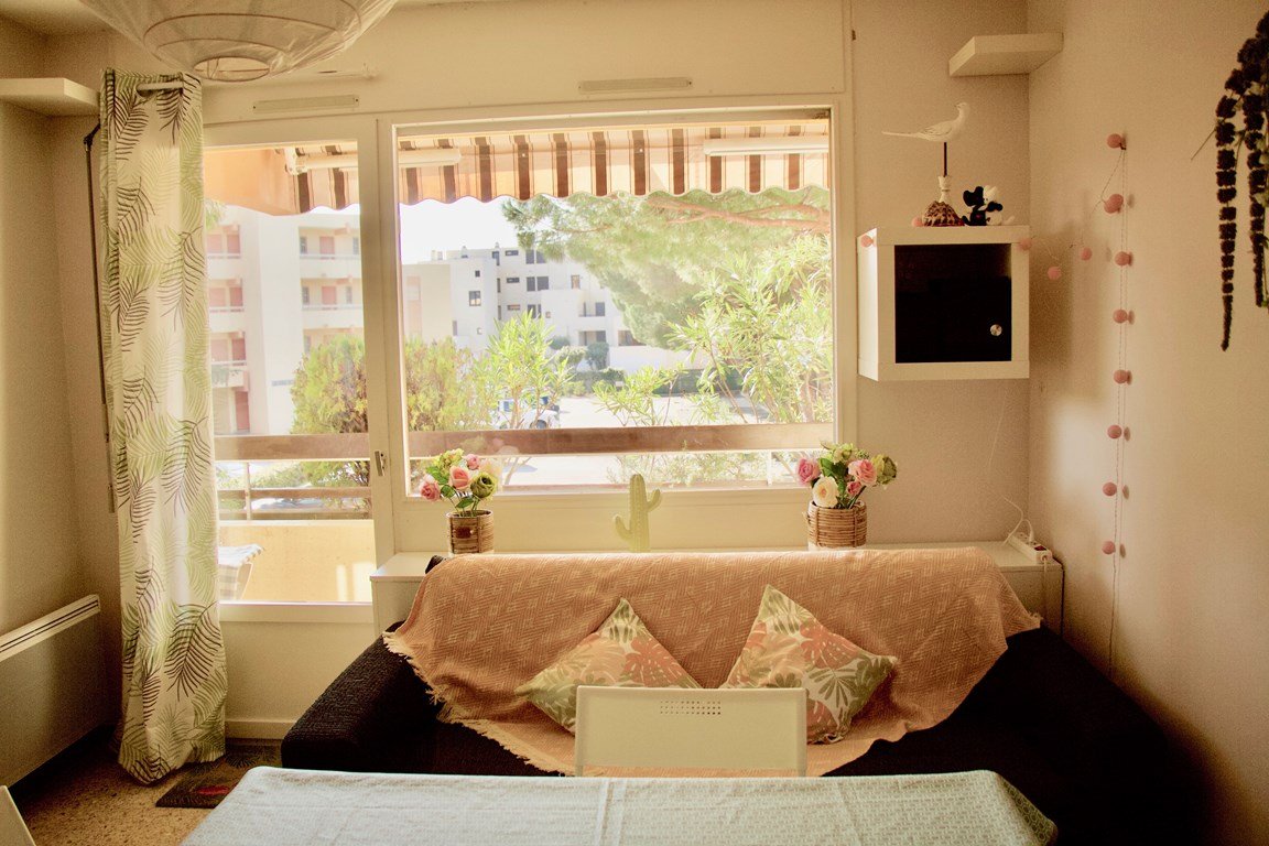 Au cœur de la Favière, joli T2 de 38m²,climatisé, avec loggia aménagée situé au premier étage. Vous apprécierez sa clarté, son aménagement et la proximité des commerces et des plages.