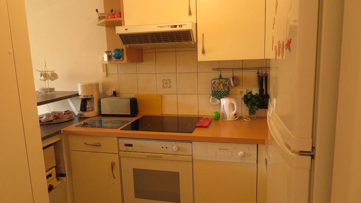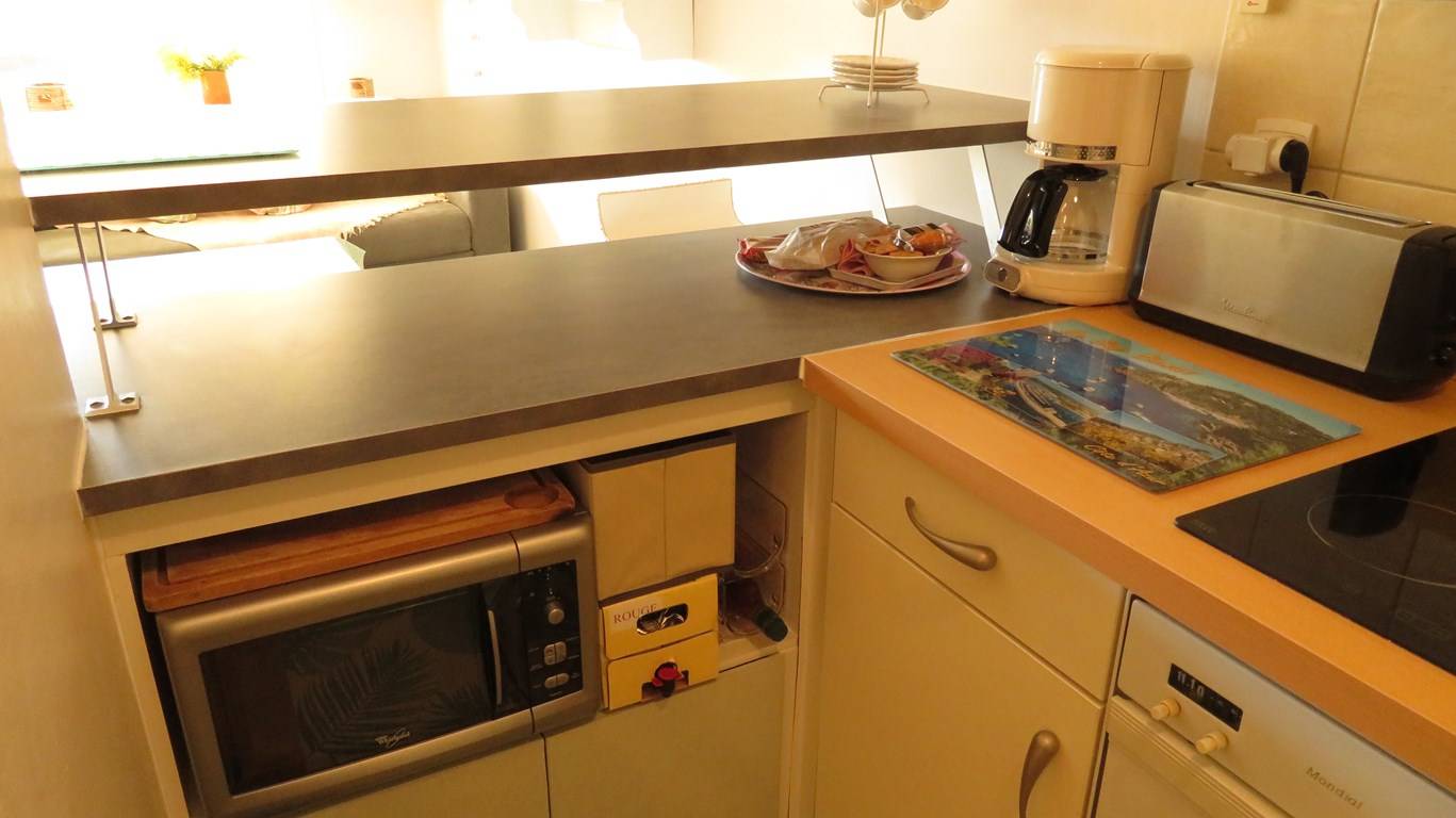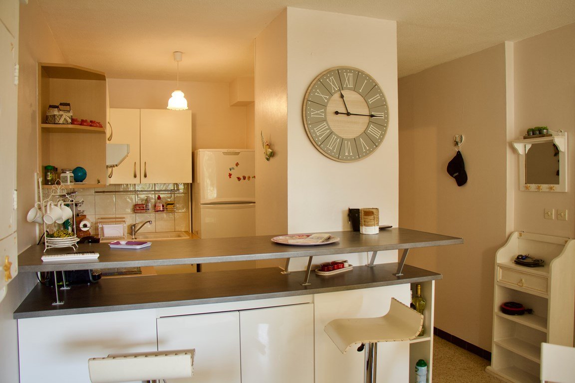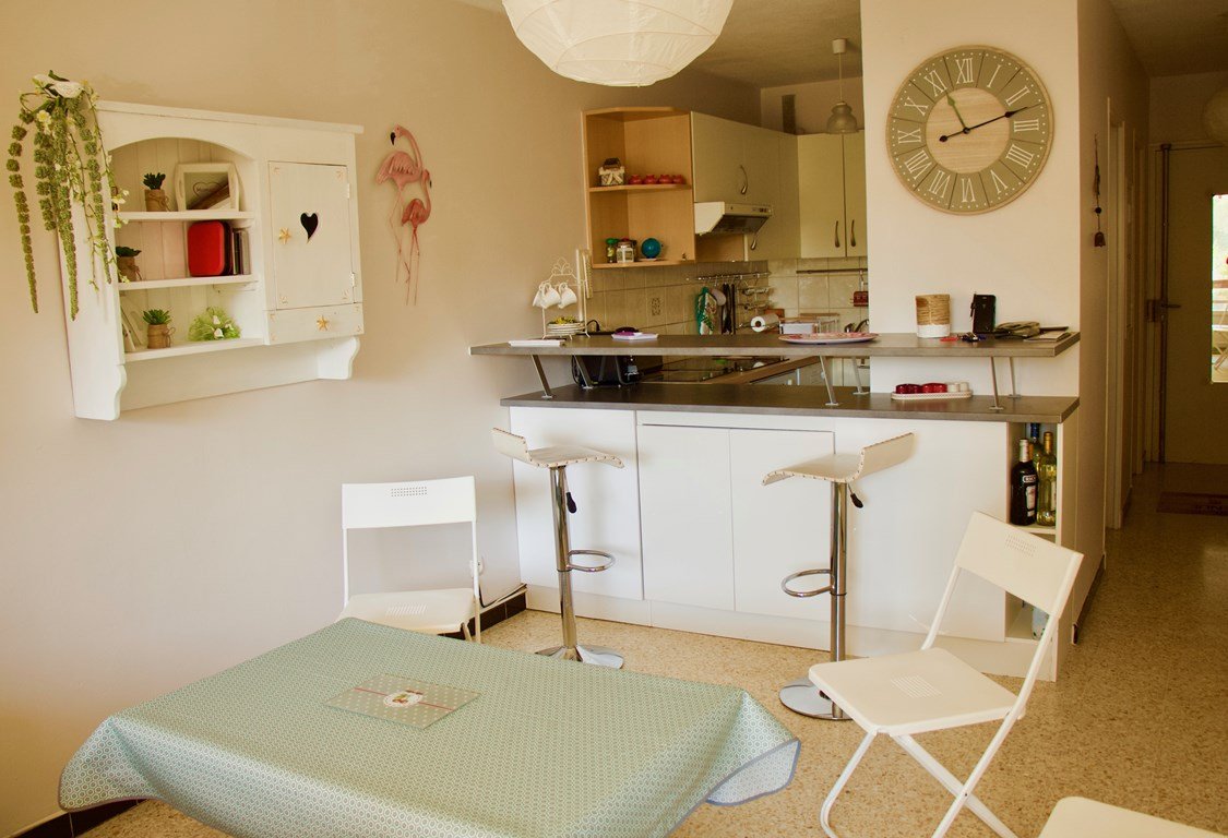 Le logement est équipé pour quatre personnes avec sa chambre et son lit double (140 x 190), et son convertible (140 x 190) dans le salon. Une cuisine fonctionnelle et bien équipée (frigo/congélateur, lave vaisselle, plaque vitrocéramique, cafetière, grille pain, four). Une salle d'eau équipée d'un lave linge (sèche linge), sèche serviette. Un salon convivial avec sa table basse réglable et son coin TV (cachée dans le meuble). Un emplacement parking sécurisé et numéroté à l'intérieur de la résidence (en entrant sur la gauche). Idéal pour des vacances sans voiture. Animaux non admis. Forfait ménage inclus sauf nuitée. Linge non inclus dans la location.