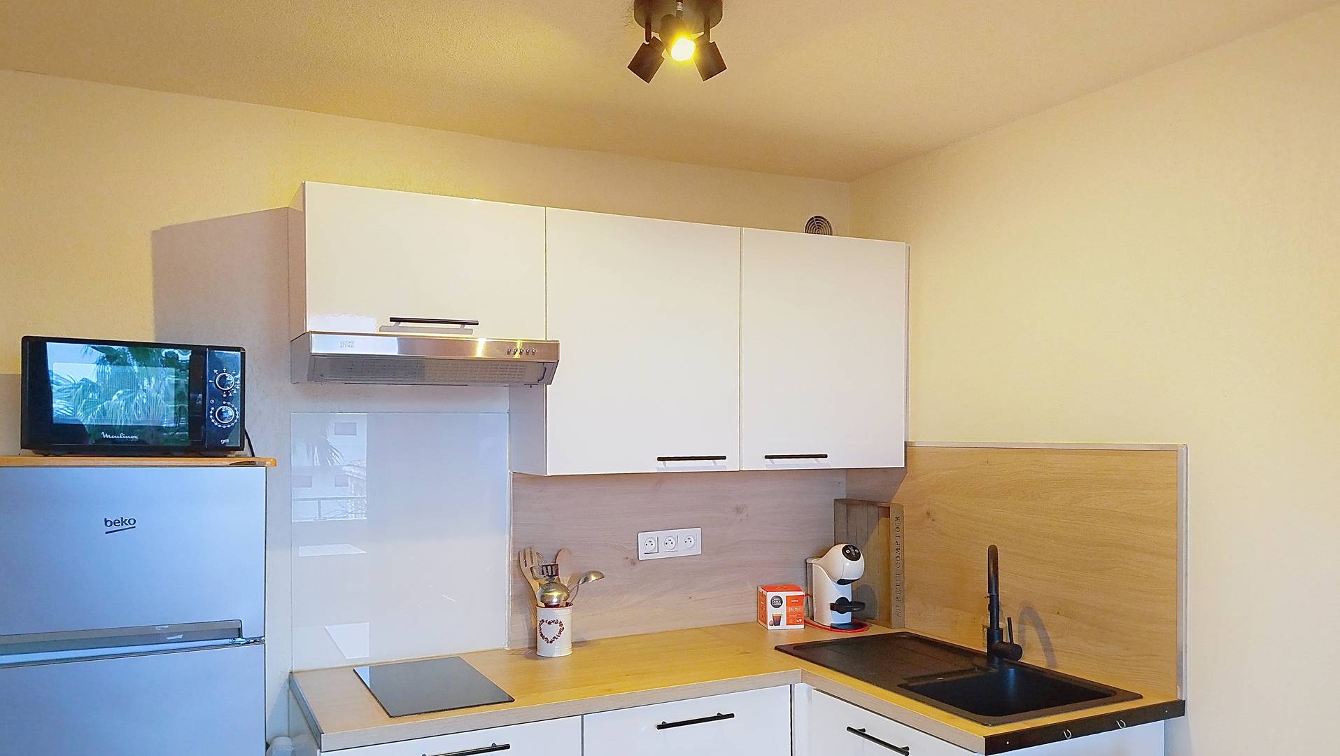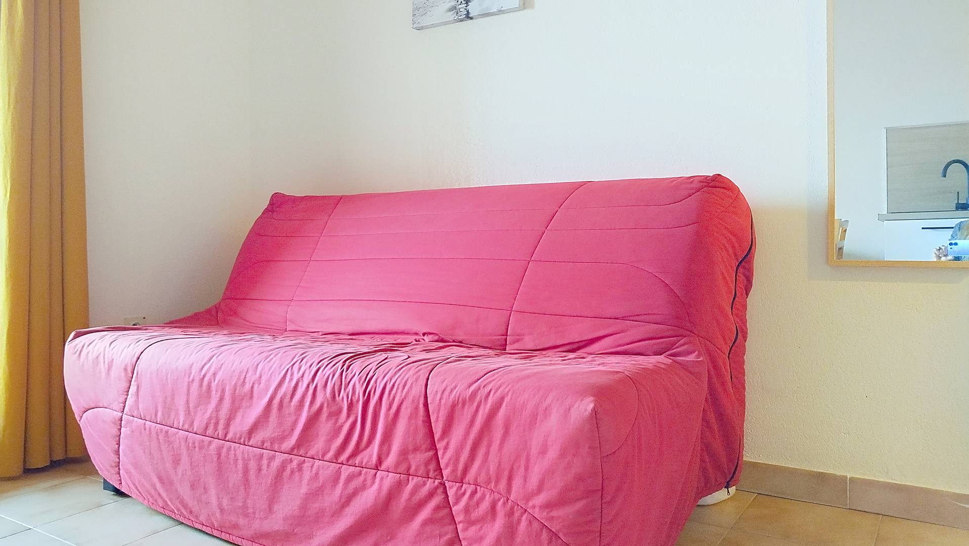 Joli T2 de situé au 2eme étage, dans la résidence Clair Azur, pouvant accueillir 4 personnes (un couple et deux enfants) équipé d'une chambre (2 lits superposés) une pièce à vivre composé d'un espace cuisine (micro ondes, lave vaisselle, plaque vitro, hotte), un espace détente (convertible, TV) table et chaises, une salle d'eau, un balcon équipé, un parking extérieur numéroté. Animaux non admis.Linge en supplément à commander au plus tard une semaine avant arrivée. Ménage fin de séjour inclus dans le tarif (sauf à la nuitée).