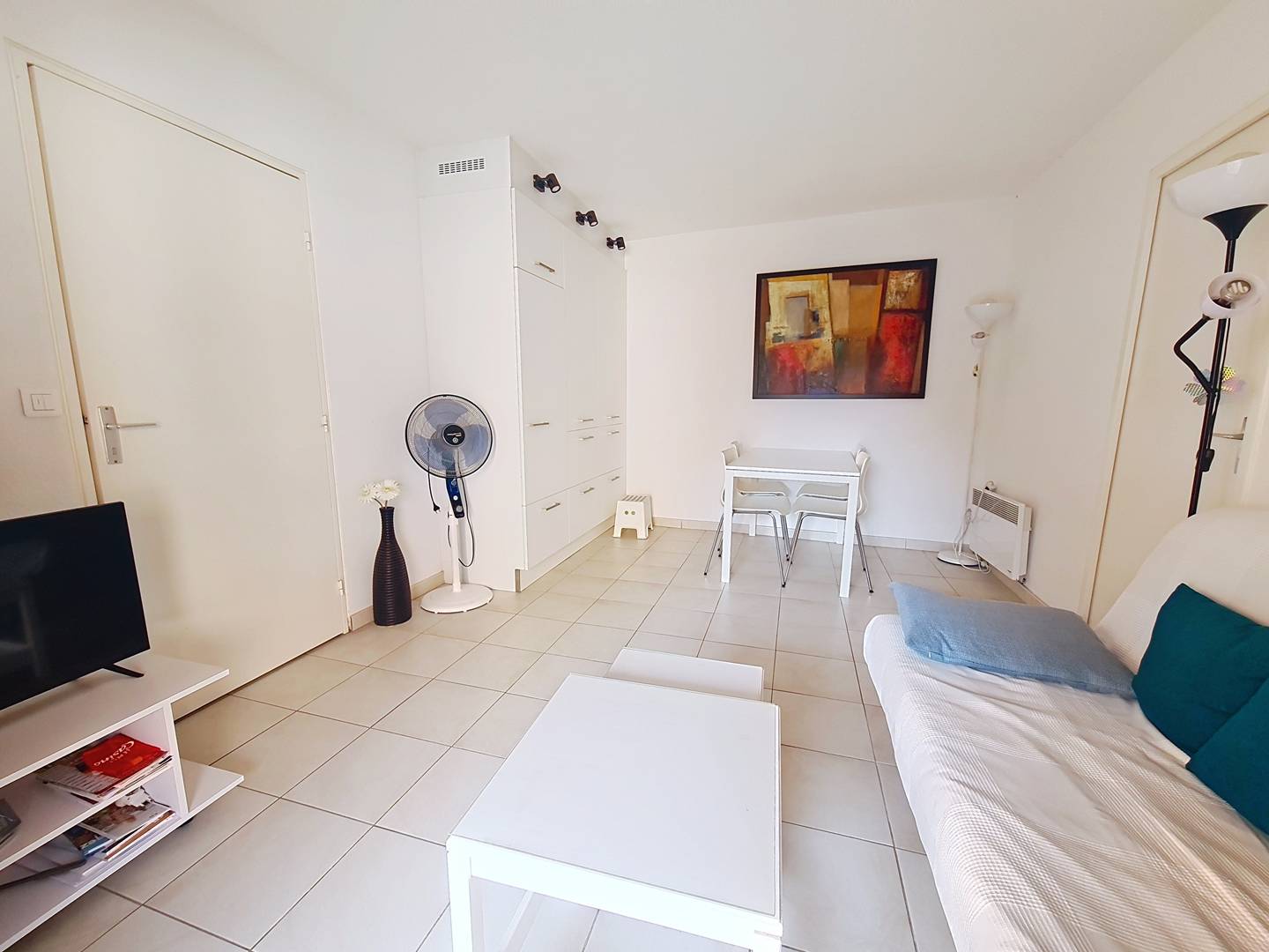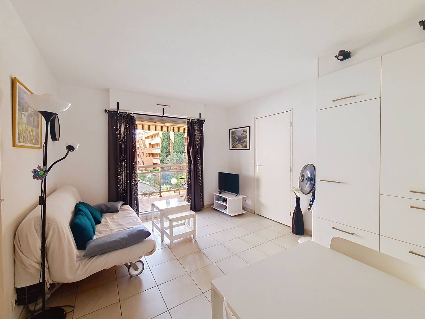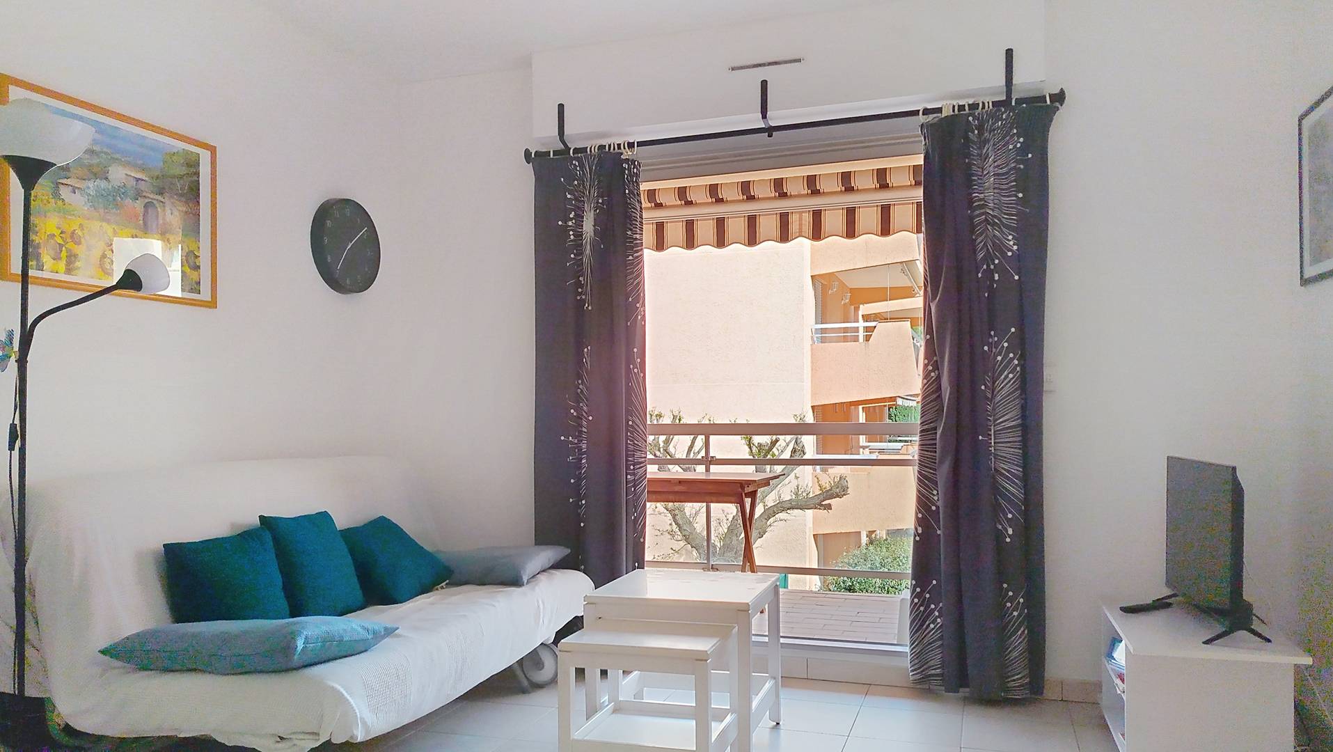 Joli T2 de 35m² situé au premier étage de la résidence l'Amirauté, proche des plages et des commerces.Vous serez séduits par sa grande terrasse aménagée de 12m² exposée Est qui prolongera vos journées, en sirotant un apéritif entre amis. Le logement peut accueillir une famille de quatre personnes avec sa chambre, son lit double 140*190 et ses deux lits superposés de 90x190. Un séjour avec un coin TV et un convertible, un coin repas avec des rangements très fonctionnels et cachés tel le frigo/congélateur invisible à l’œil nu. Une cuisine indépendante avec un lave vaisselle et un micro ondes. Une salle d'eau avec un lave linge. Un wc indépendant. Un emplacement parking en sous sol numéroté 576. Animaux non admis.Ménage inclus dans le tarif.Linge non inclus.