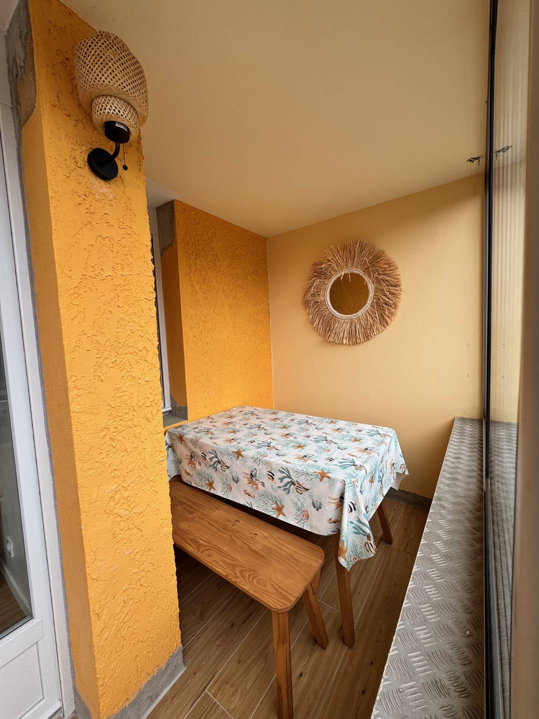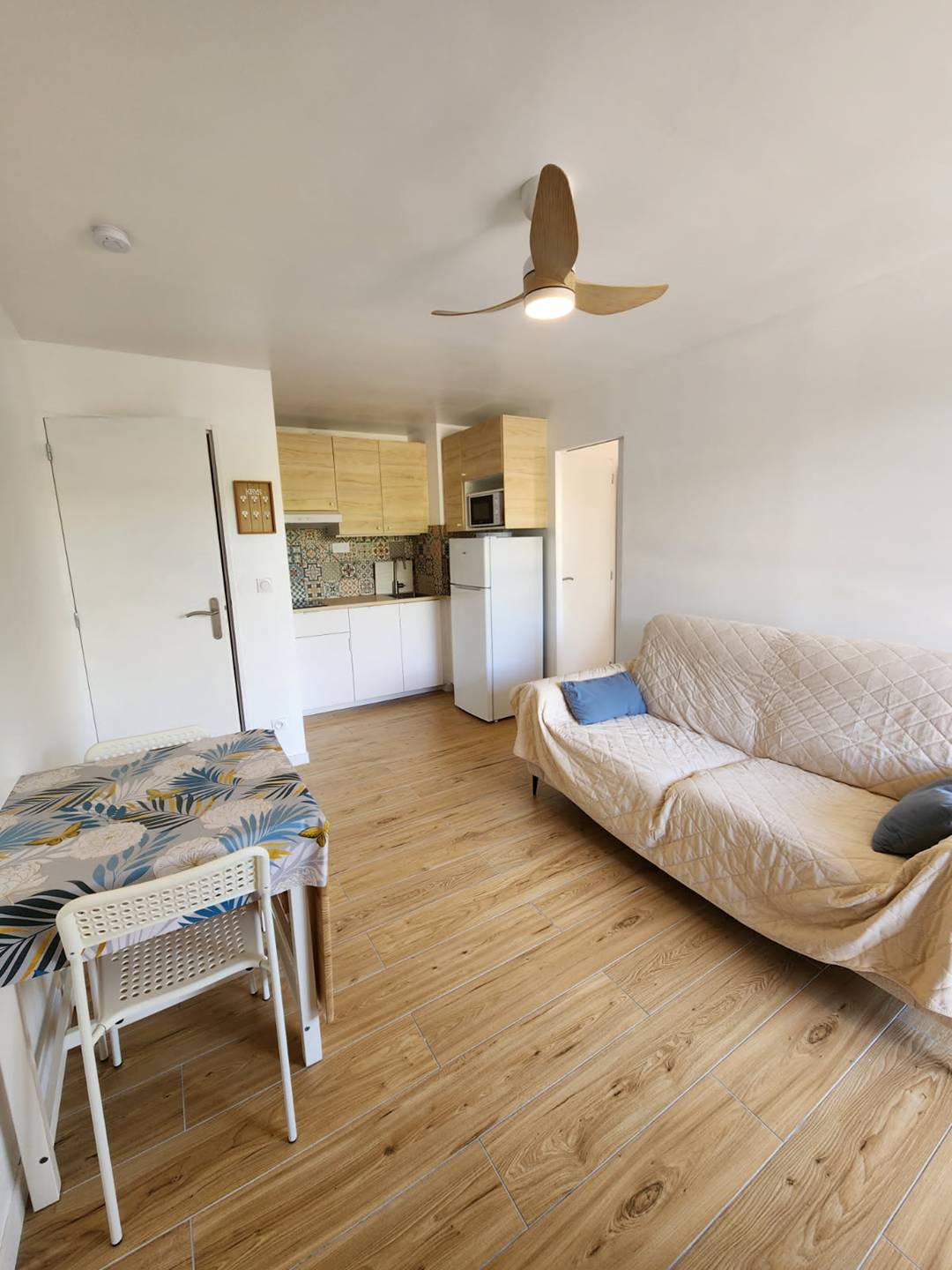 T2 de 26m² situé résidence Côte Azur 1 au 2eme étage, pouvant accueillir 5 personnes composé d'une entrée, une pièce principale avec un espace cuisine équipé(lave vaisselle, micro ondes, frigo congélo, plaque induction) un espace salle à manger salon ( convertible, table chaises, TV), une chambre (1 lit double 140 +1 lit simple superposé 80) une salle d'eau /wc avec douche et lave linge. Une loggia fermée exposée Nord Est aménagée (table chaises).Animaux non admis. Linge à commander en supplément au moins une semaine avant arrivée. Ménage fin de séjour inclus dans tarif (sauf à la nuitée).