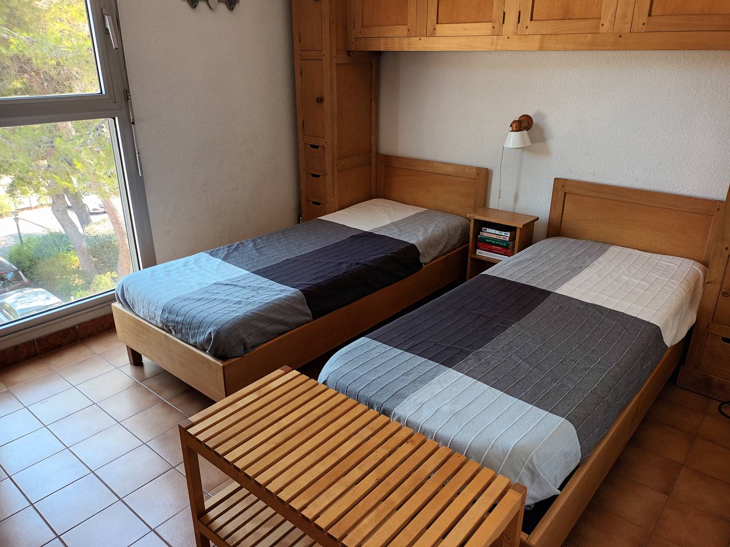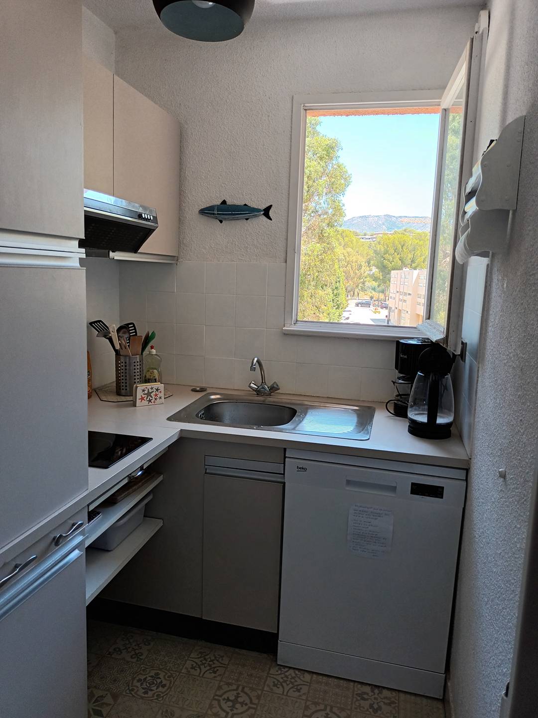 Il peut accueillir quatre personnes (deux lits simples dans la chambre et un convertible dans le séjour); il est composé d'une kitchenette indépendante (lave vaisselle), un grand séjour avec un coin TV et deux canapés (dont un convertible), un espace repas, une salle de bain (Lave linge) et un wc indépendant. La loggia équipée,donne sur les jardins. Son orientation Est vous assurera des matinées ensoleillées où il fera bon de prendre un petit déjeuner. Le logement dispose d'un garage en sous sol numéroté 635. Les animaux ne sont pas admis. Le ménage est inclus dans le tarif (sauf à la nuitée). Le linge n'est pas inclus dans la location.
