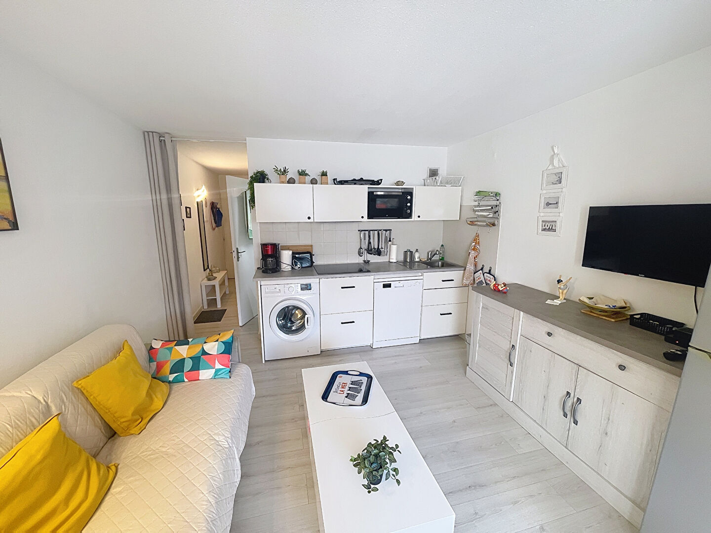 Coup de coeur assuré pour ce T2 meublé en exclusivité chez IMTO. Découvrez ce magnifique deux pièces meublé, au sein d'une résidence sécurisée : séjour lumineux ouvert sur une cuisine équipée, loggia fermée, chambre confortable et lumineuse, salle d'eau avec WC. Parking en annexe. ATOUTS : A moins de 500 m de la plage , à proximité des commerces, sans travaux et faibles charges de copropriété. Idéal pour une résidence secondaire ou un investissement locatif ! (7.00 % honoraires TTC à la charge de l'acquéreur.) Copropriété de 299 lots - dont 115 lots habitation. (Pas de procédure en cours).