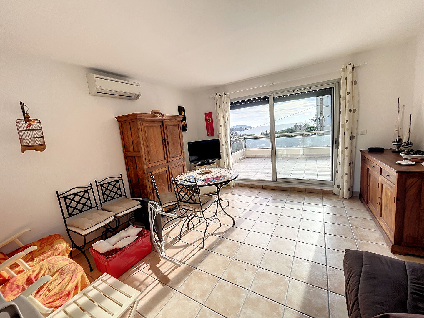 Deux pièces à Saint-Clair. Composé d'une entrée séjour, une kitchenette équipée, un salon, une chambre, une salle de bain, un WC indépendant et un parking sécurisé. (6.00 % honoraires TTC à la charge de l'acquéreur.) Copropriété de 23 lots - dont 10 lots habitation. (Pas de procédure en cours).